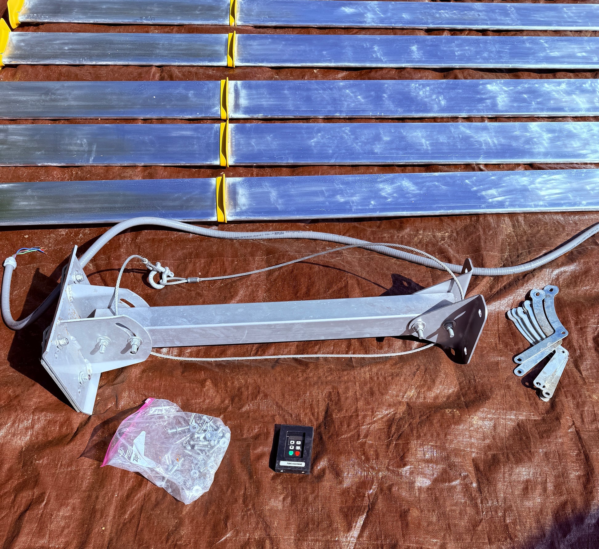 Fan was professionally removed and stored; the motor, gearbox and blades are in very good condition.