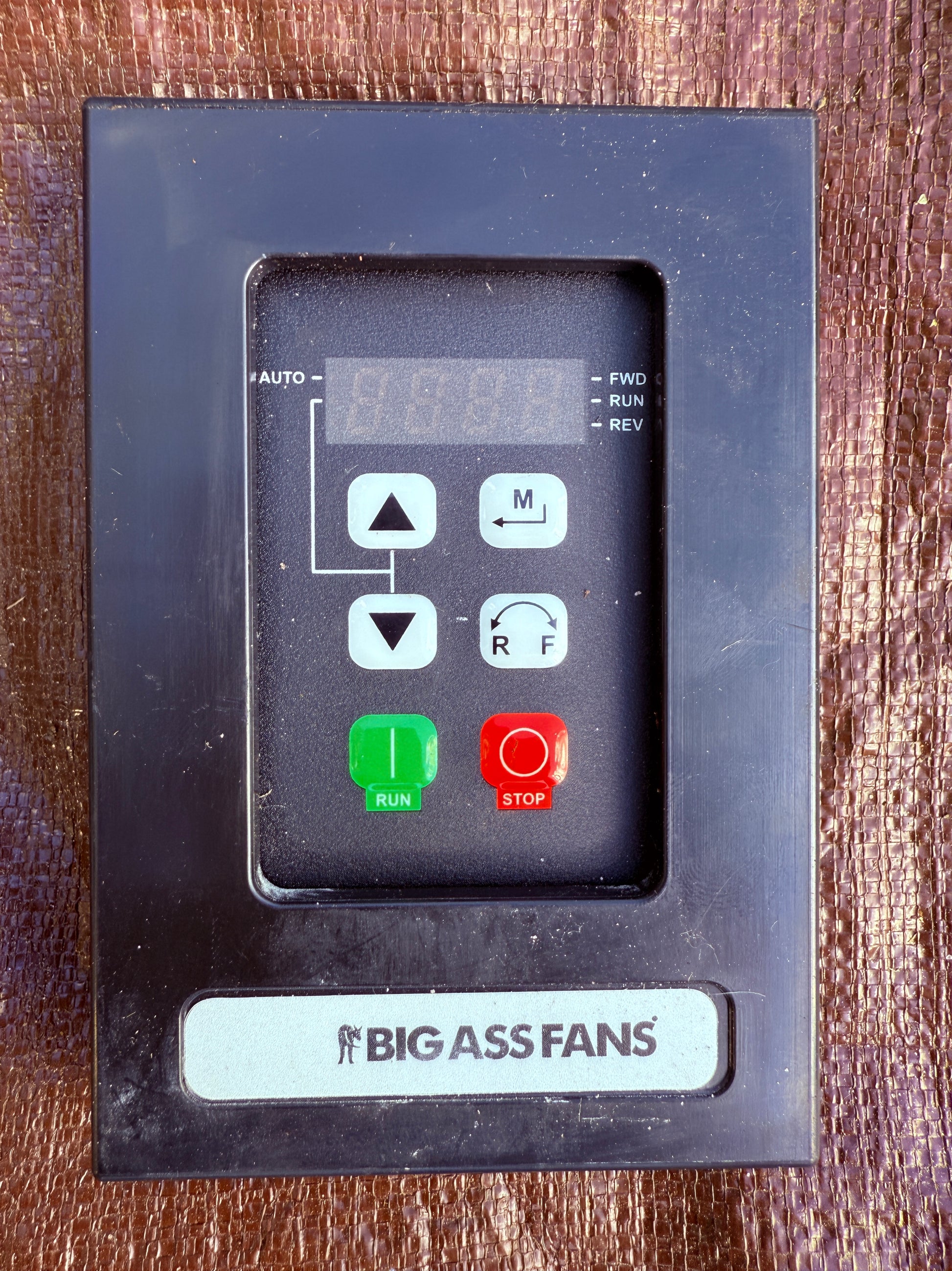 Controller: Includes the Big Ass Fans variable‑frequency SMVector controller (wall‑mounted keypad).